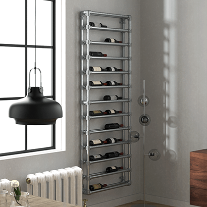 Das Weinregal kann freistehend aufgestellt, an der Wand befestigt oder sogar von der Decke abgehängt werden, je nach Platz, Stil und gewünschter Funktion.